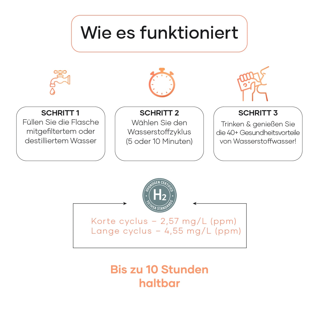 - Wissenschaftlich fundiert – Immer mehr Studien zeigen, dass Wasserstoff antioxidative und entzündungshemmende Vorteile bietet.