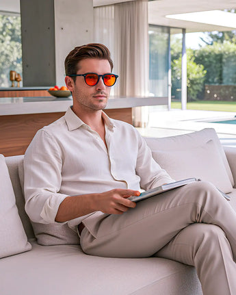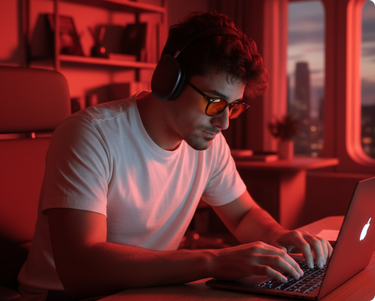 Protect your eyes from artificial blue light. For better focus and sleep.