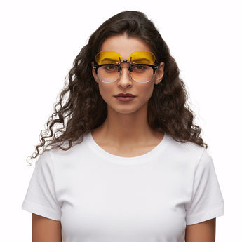 Transform your glasses into blue light protection with our premium clip-ons. No prescription adjustments, no hassle – just instant comfort and style.