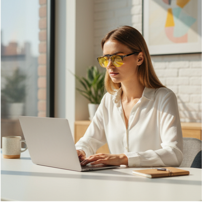 Turn any pair of glasses into blue light filters with our premium clip-on lenses. Perfect for work, gaming, and evenings behind the screen.