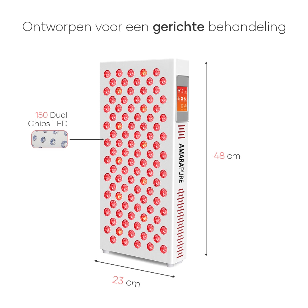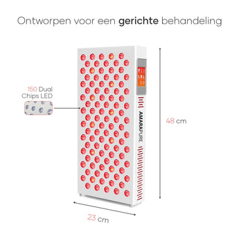 • Afstand & duur: 5–10 minuten per zone als start; bouw op naar 10–20 minuten per gebied. Houd 15–45 cm afstand volgens de handleiding. Start met 3–5 sessies per week.