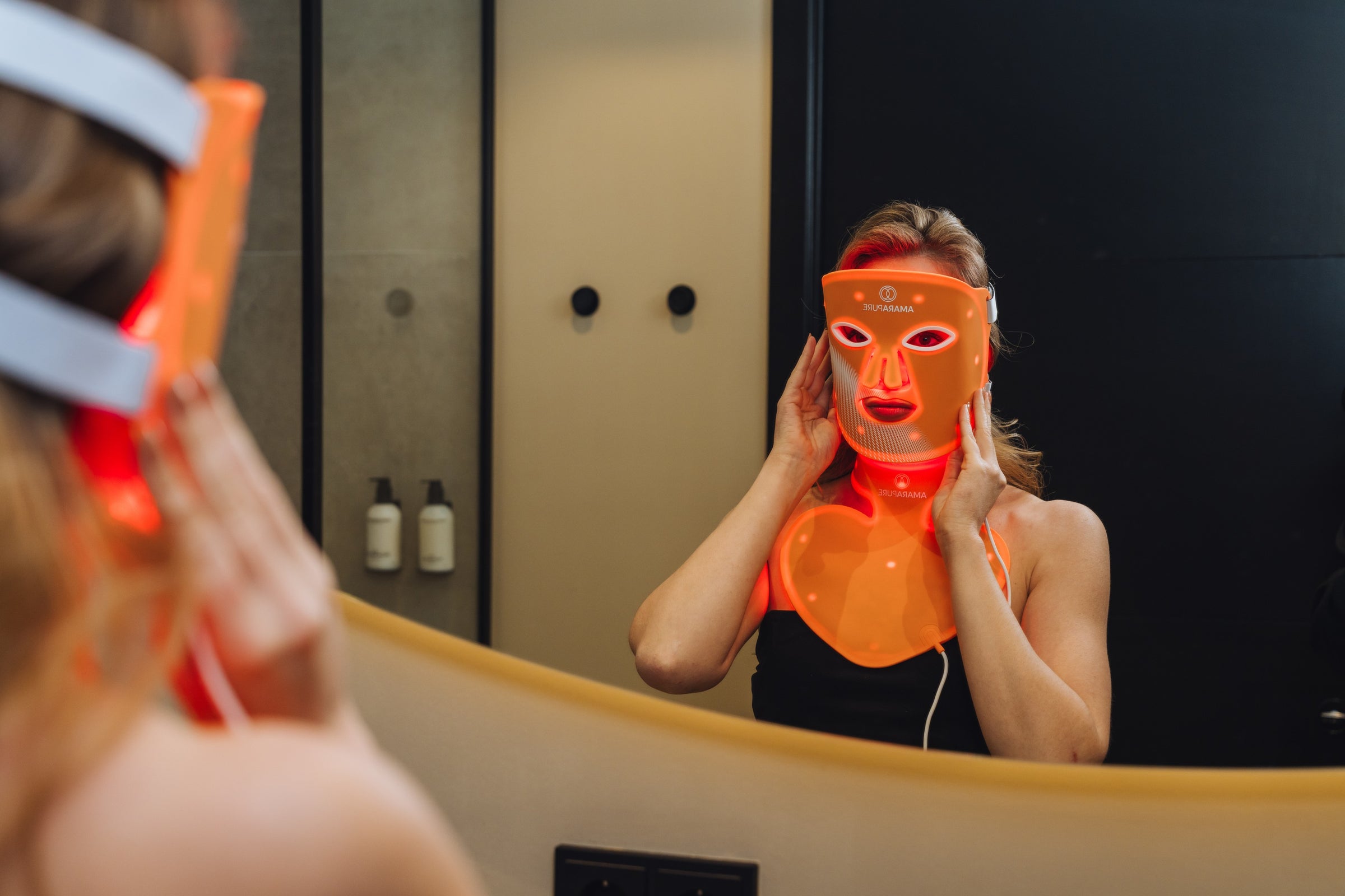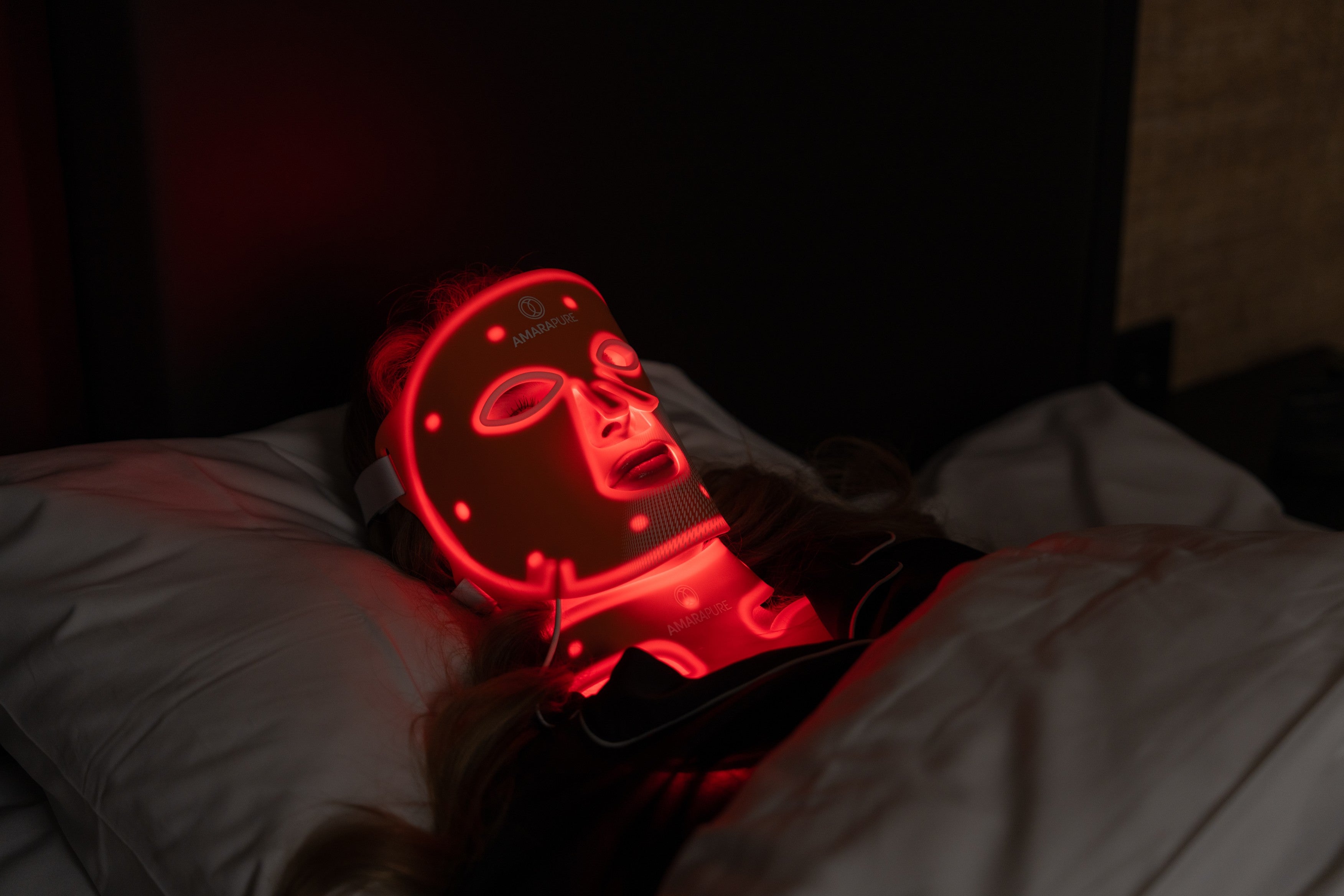 Rødlysmasken stimulerer kollagenproduksjonen og forbedrer hudstrukturen. Huden føles fastere, glattere og synlig friskere — hver dag på nytt.