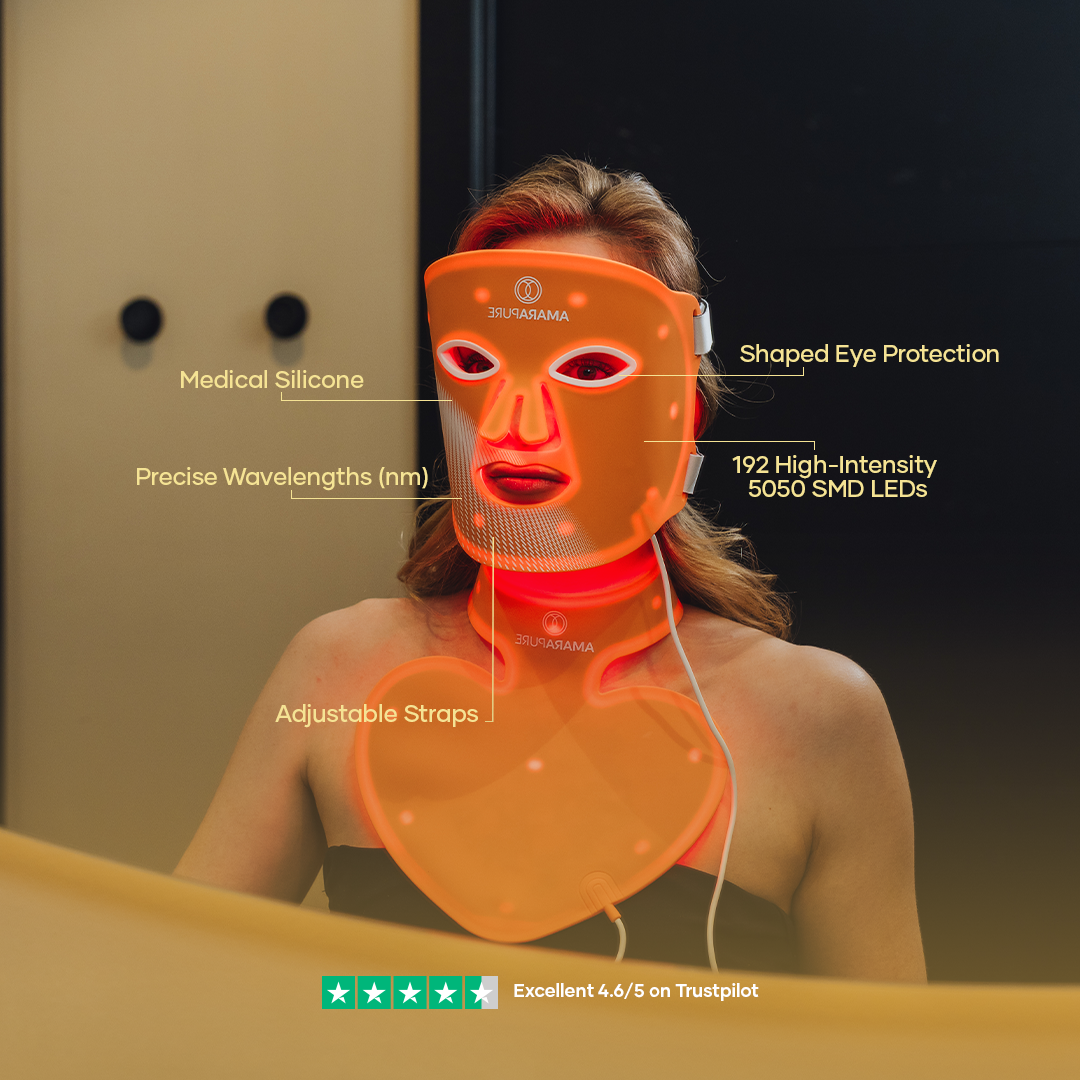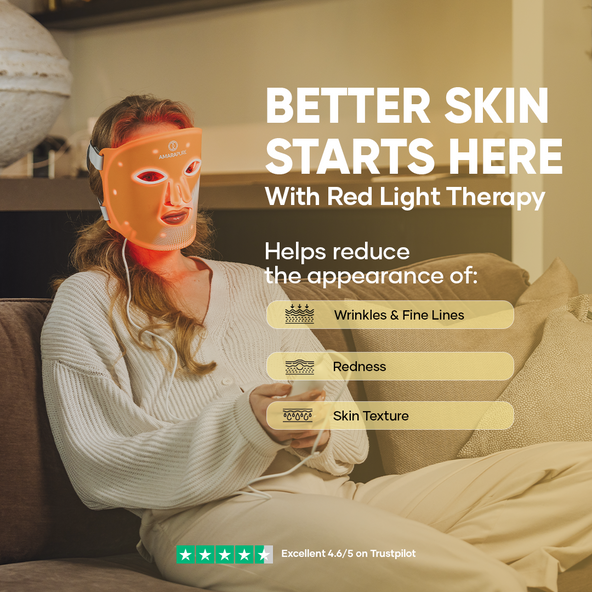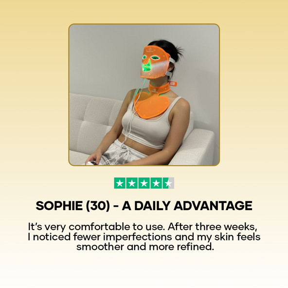 Rödljusmasken stimulerar kollagenproduktionen och förbättrar hudens struktur. Din hud känns fastare, mjukare och synligt fräschare – dag efter dag.